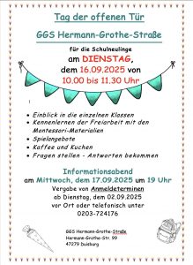 Anbei finden Sie die Einladung für den Tag der offenen Tür sowie eine (vorläufige) Terminübersicht für das gesamte Schuljahr.